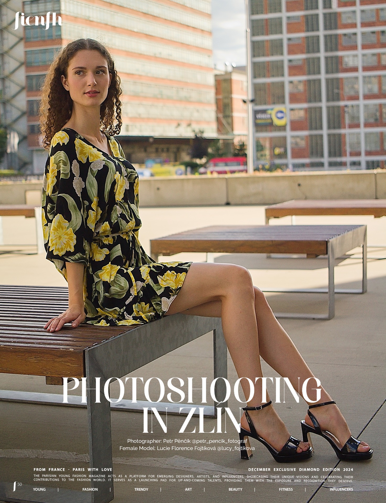 Série fo´tografií focených ve Zlíně s modelkou Lucií Fojtíkovou, časopis Fienfh, Francie, prosinec 2024